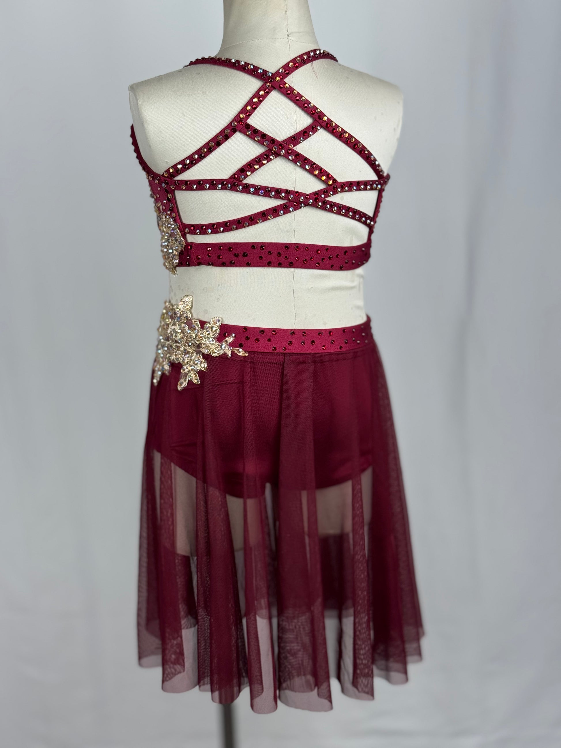 Maroon and Gold Lyrical Dance Costume, Child Medium